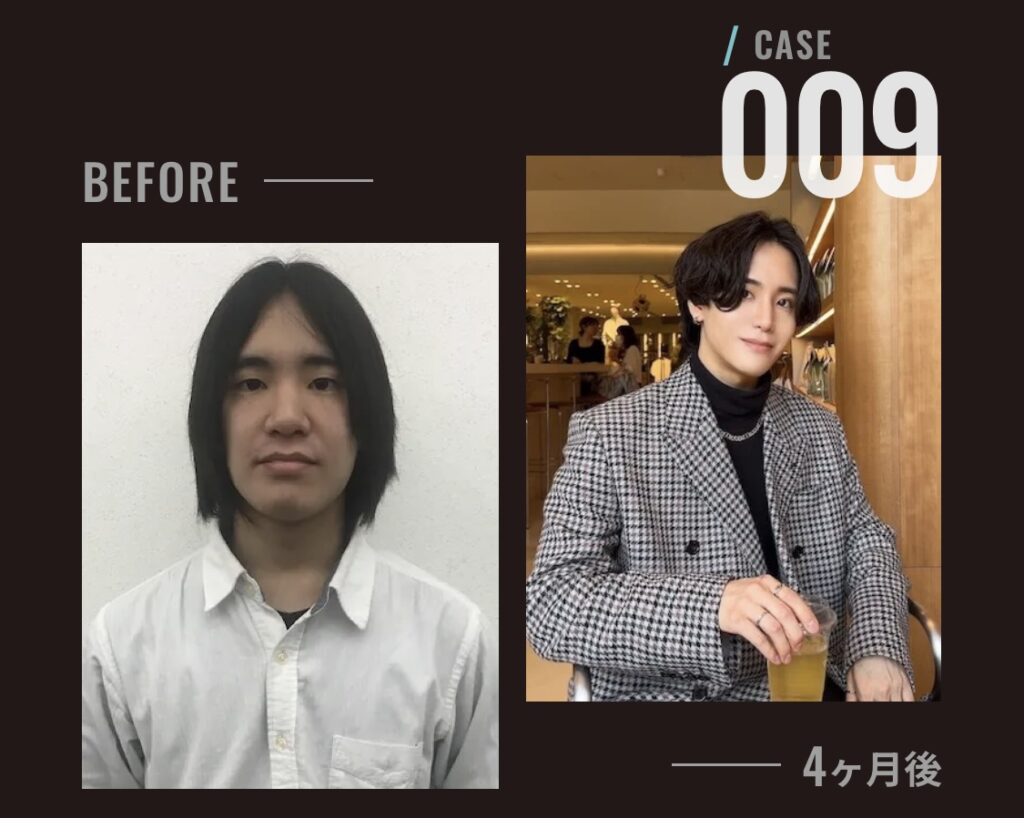薄い部分を自然に補正することで、より男らしく洗練された印象に。