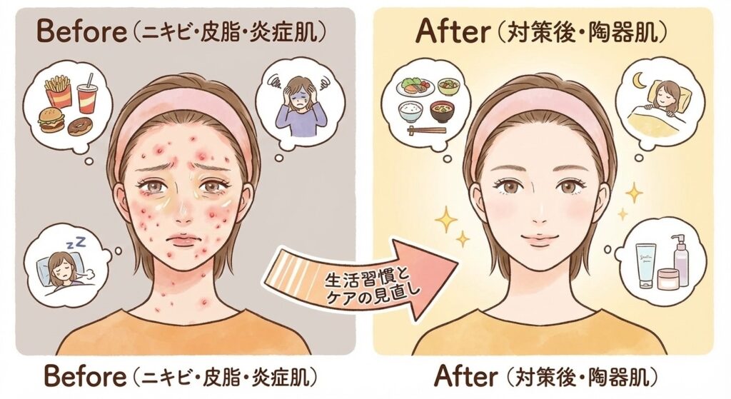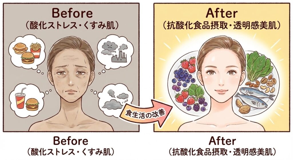 つまり、抗炎症・抗酸化・血糖コントロール・高タンパク・良質脂質を意識した食事をすれば、肌も体型も同時に改善できます。