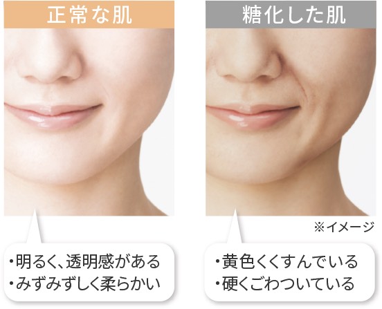 こちらも老け見えの原因の一つです。糖化した肌は年を重ねた印象に繋がります。