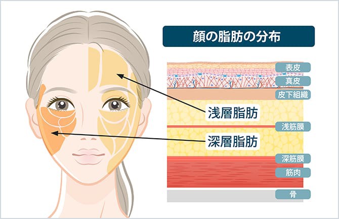 しかし、頬の脂肪が多いと、その重みでほうれい線が強調されます。