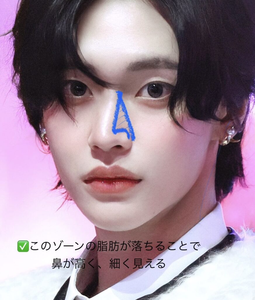 これにより、鼻が高く見える錯覚が生まれるんです。