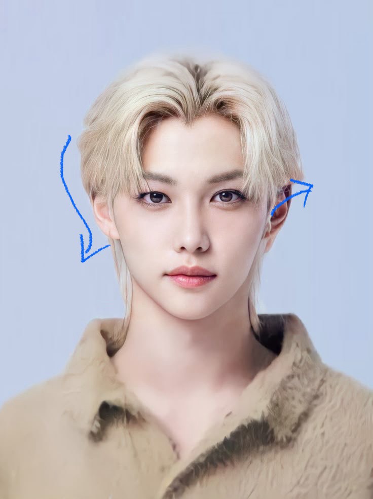 ・頬骨あたりでの綺麗なリバースの毛流れ