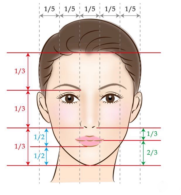 ではさっそく、メイクで参考にすべき顔のバランス比を2つ紹介していきましょう。