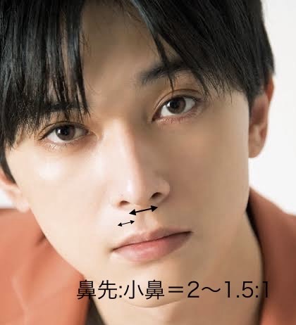 鼻先と小鼻のバランスも、**黄金比(2〜1.5:1)**に近いと美しく見えます。